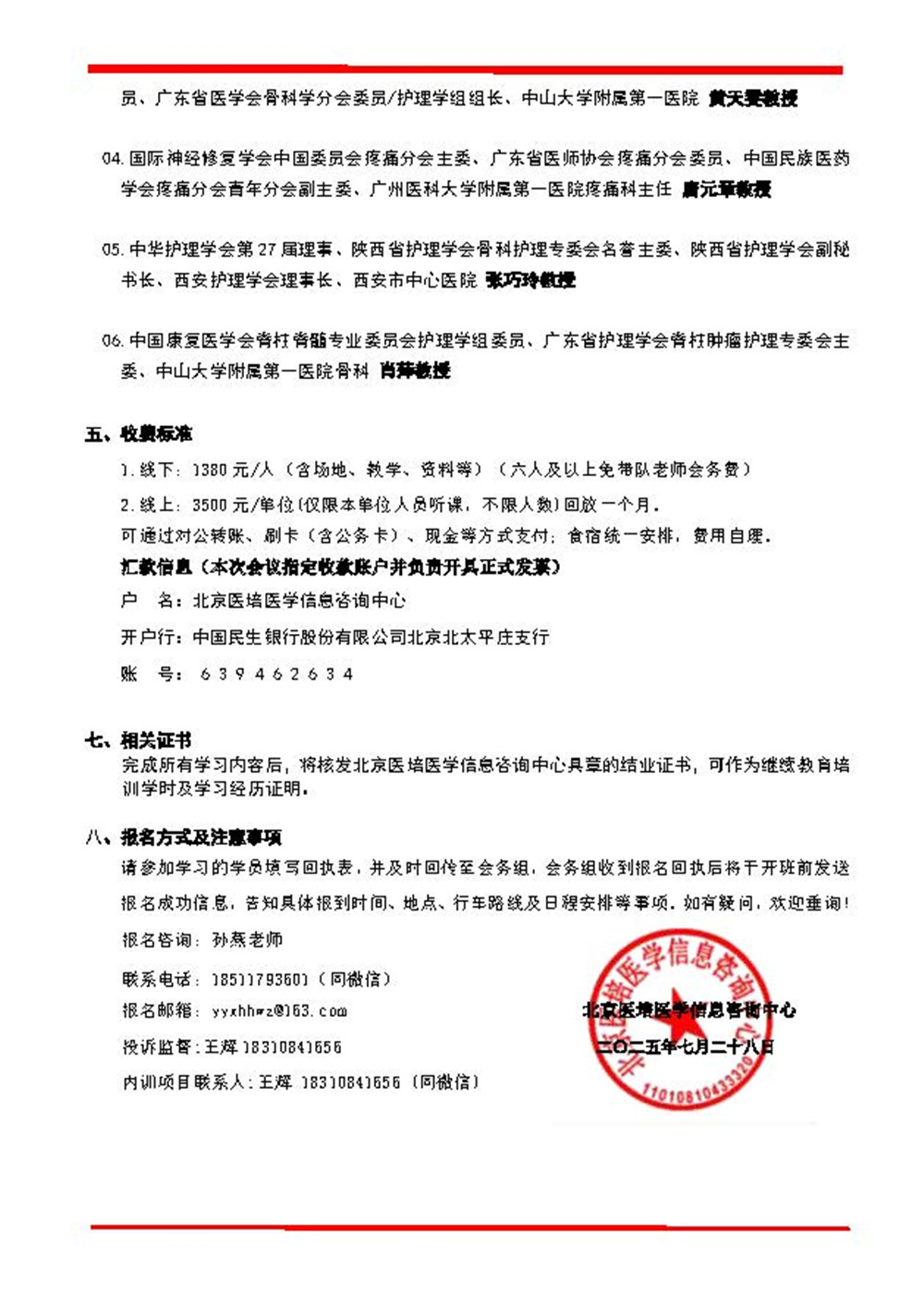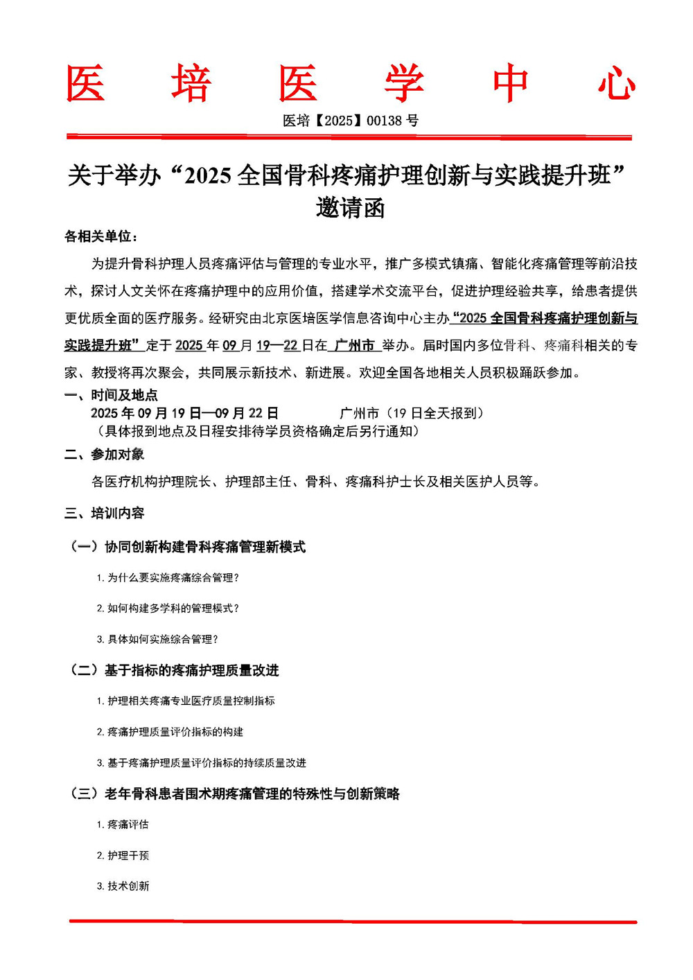 骨科疼痛护理创新与实践提升班—9.19(广州市)
