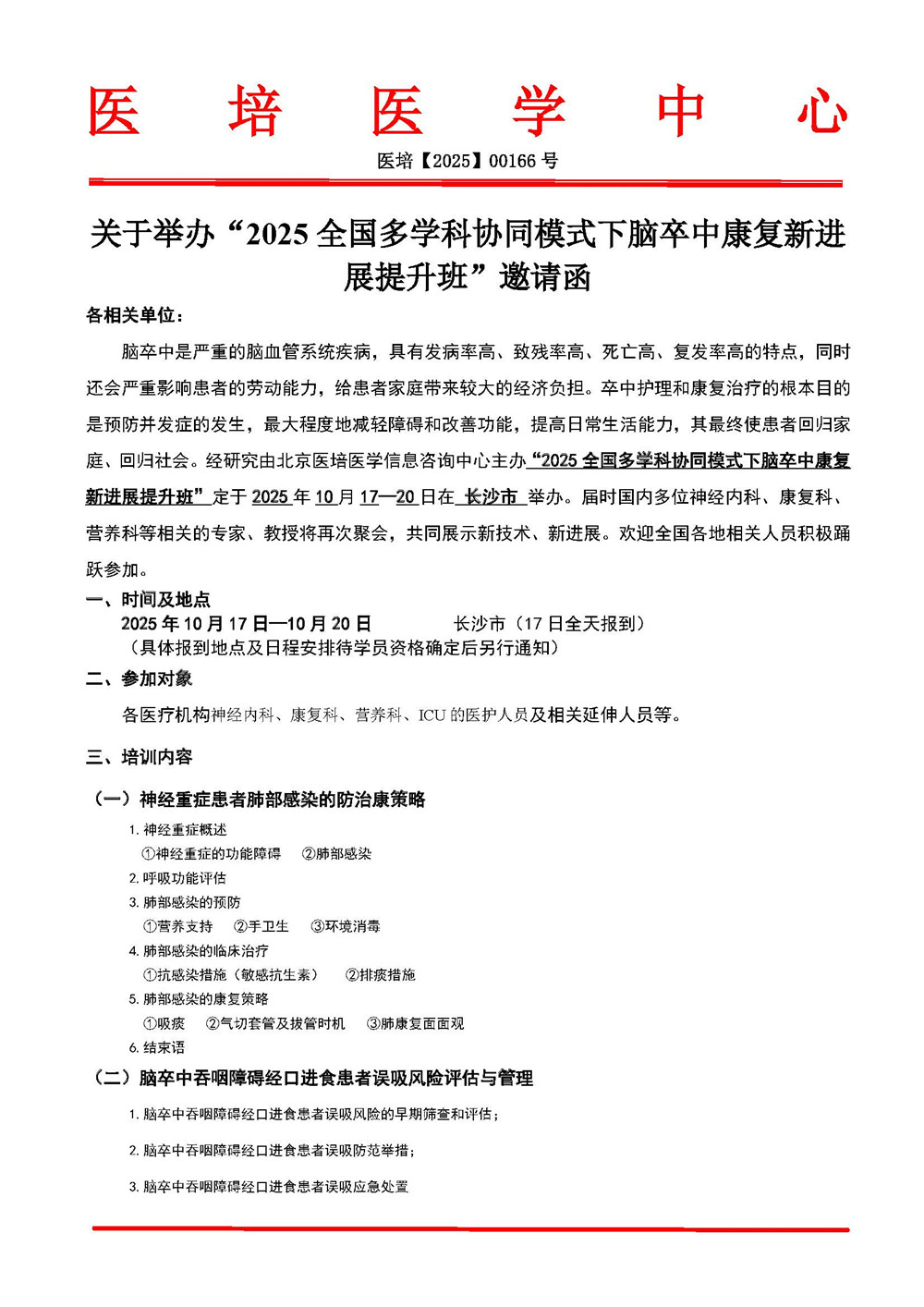 多学科协同模式下脑卒中康复新进展提升班—10.17(长沙市)