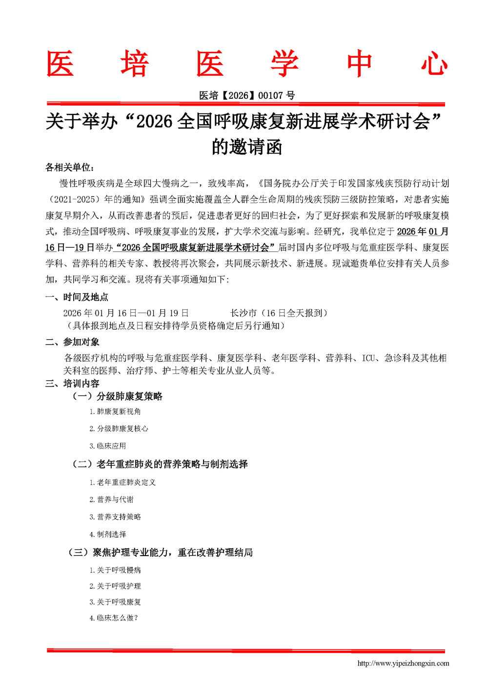 关于举办“2026 全国呼吸康复新进展学术研讨会”的邀请函