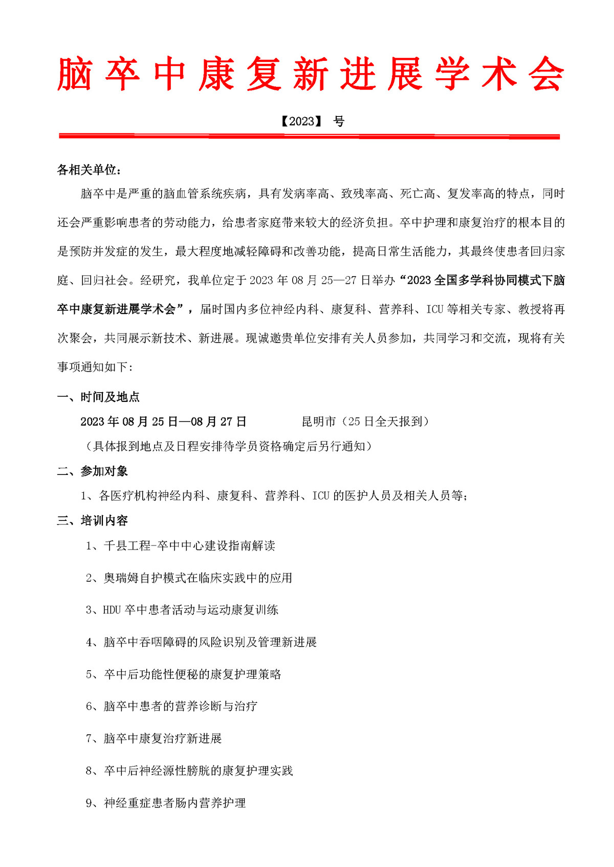 2023全国多学科协同模式下脑卒中康复新进展学术会